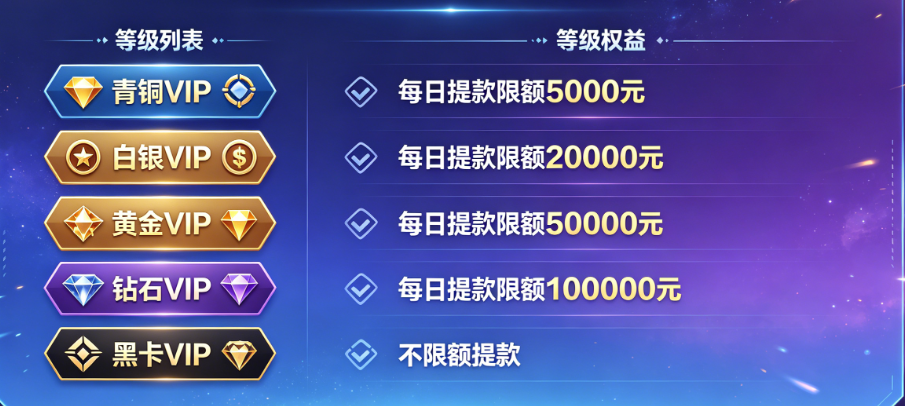 线上赌场VIP等级制度详解:达到哪个等级才能享受不限额提款?